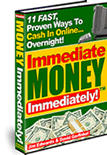 This is your invitation to join us on the Now that you see we actually practice what we preach and we rank among the most successful at providing easy-to-understand techniques that other people can (and do) use to make money online themselves, let's get down to brass tacks: what's in this book? We start with 11 techniques. I'll be the first one to tell you that you've heard of some of these methods before. But I may be the only one to say flat out that most people are "in the dark" about exactly how to use them. That's where "Immediate Money Immediately" sets itself apart from the great mass of other Internet marketing "fluff". We don't require any guesswork on your part or leave anything to chance. We show you in exact detail - with real-life illustrations and examples - what to do! There are complete explanations - in plain, ordinary language - of the fine points that spell the difference between success and failure in marketing on the Web, including many sets of step-by-step instructions. We also place a high priority on things that cost little or nothing to develop or implement. This book is the "blueprint" you've been looking for for making money online without spending money to do it! Read just the first section and you'll know...